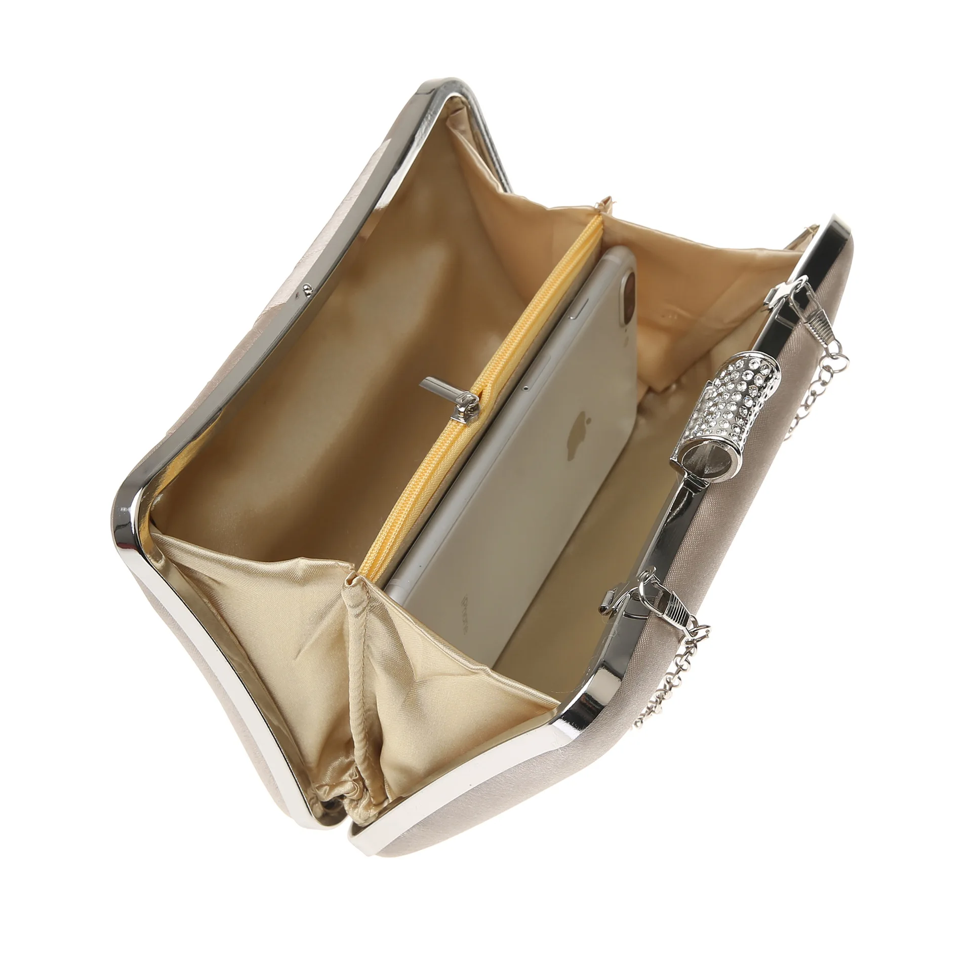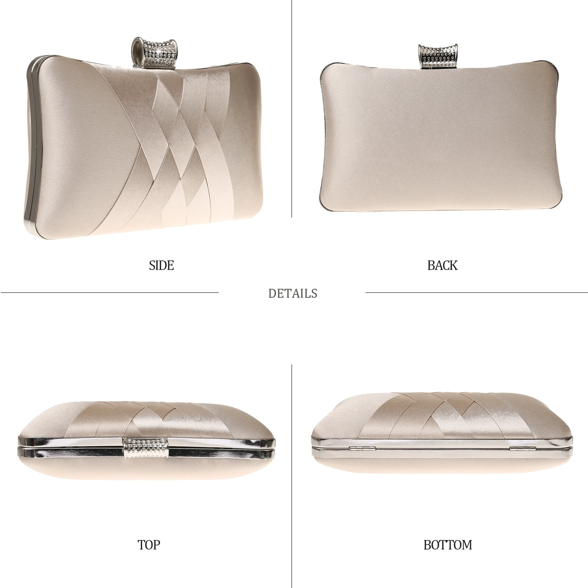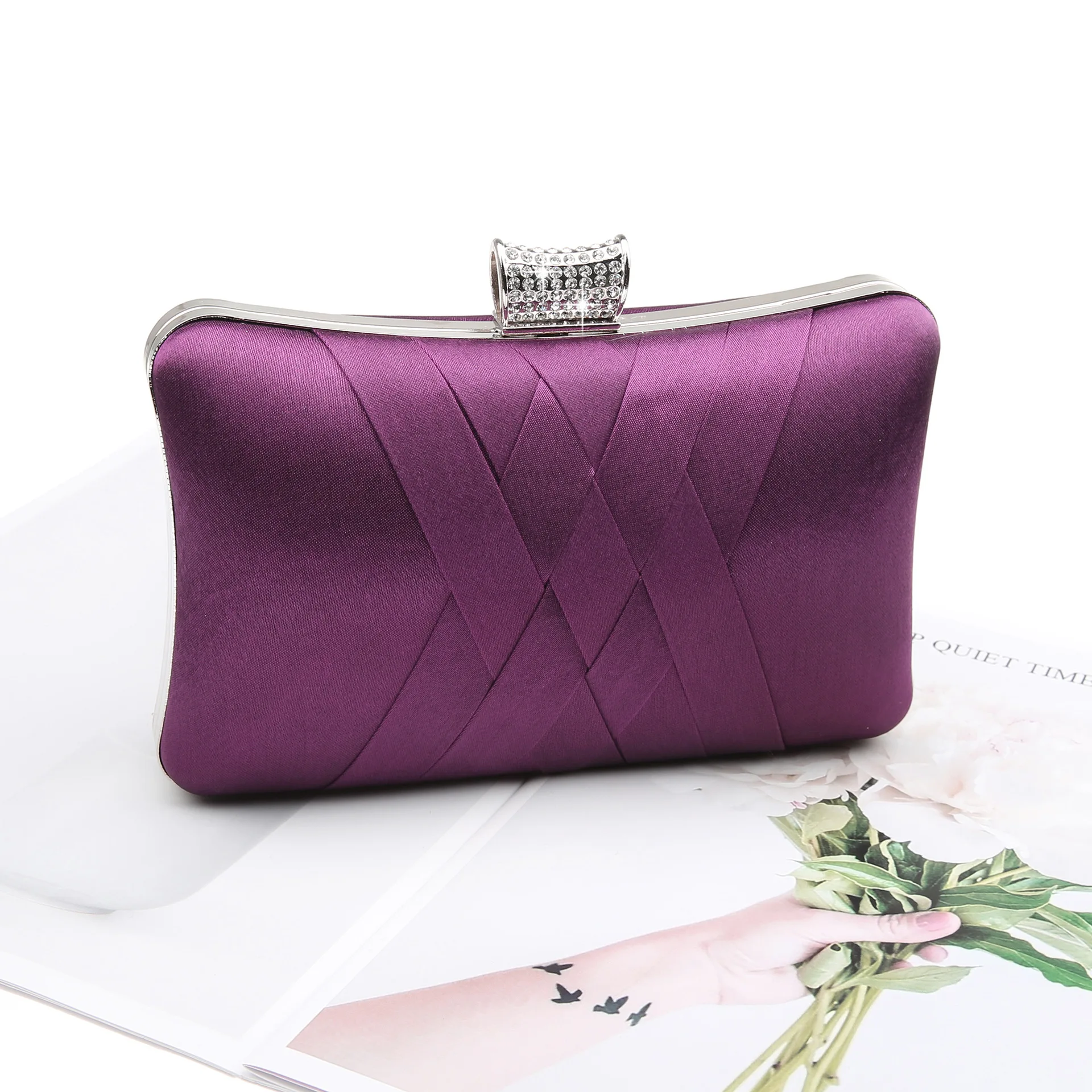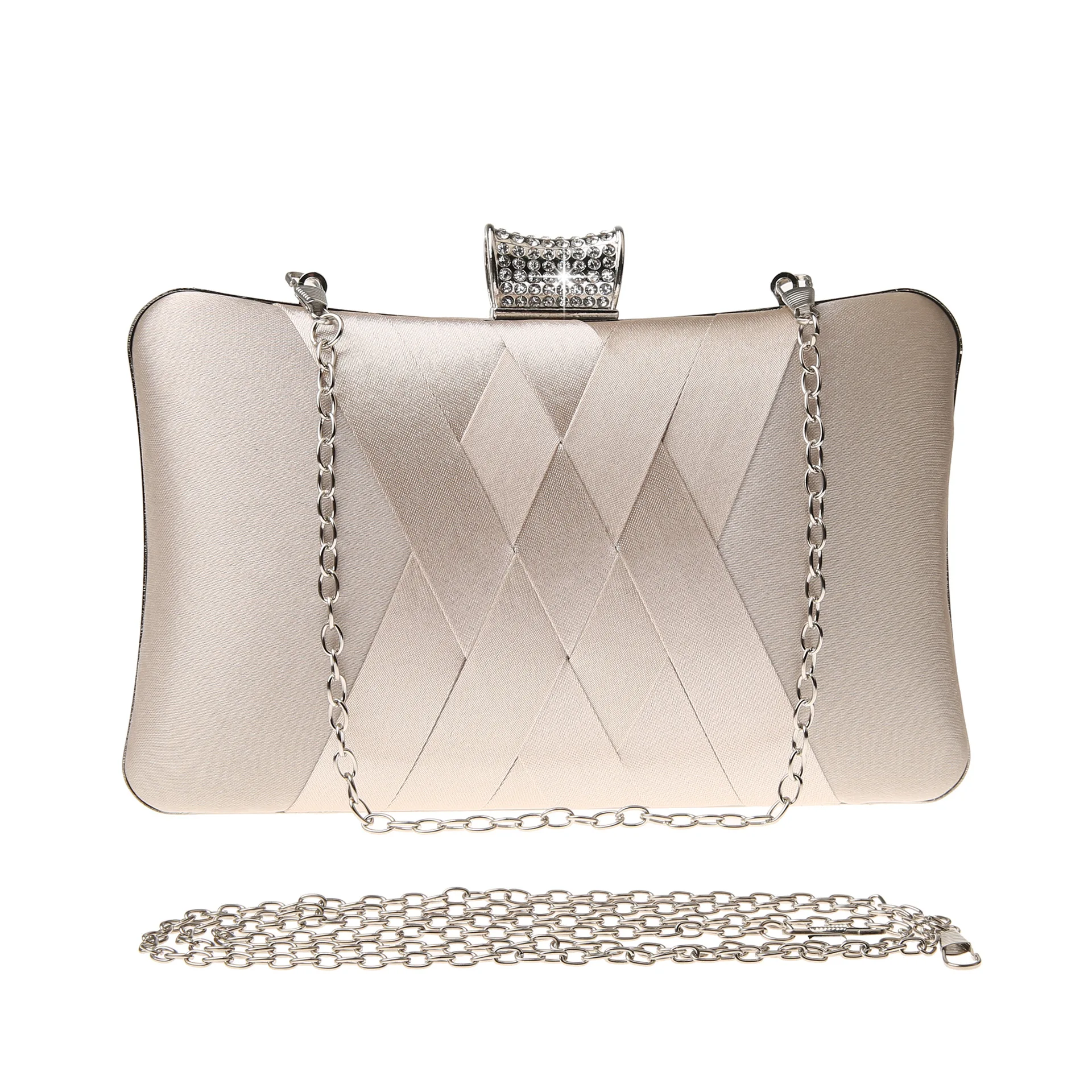 Cape-Bay Fashion Brand Women’s Bag, New Simple Style with Silky Fabric Woven Small Bag, Metal Frame Hard Shell Shaped Bag, Artificial Diamond Decorated Crystal Lock Single Shoulder Bag, Niche Trendy Bag, Small Mini Chain Bag, Crossbody Bag, Evening Dress Cheongsam Accessory Bag, Wedding Banquet Party Bag